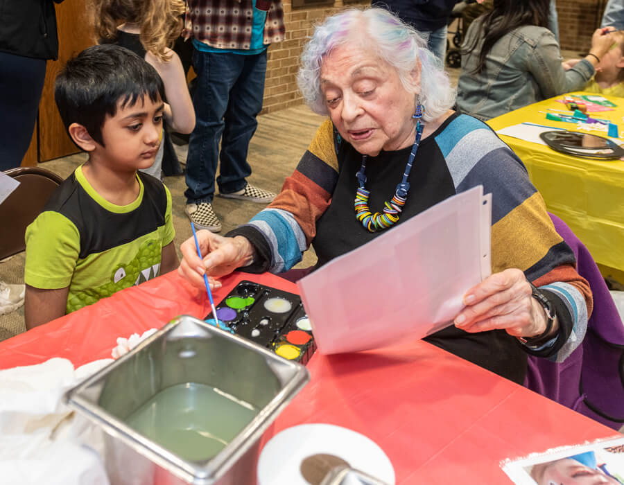 woman painting with child