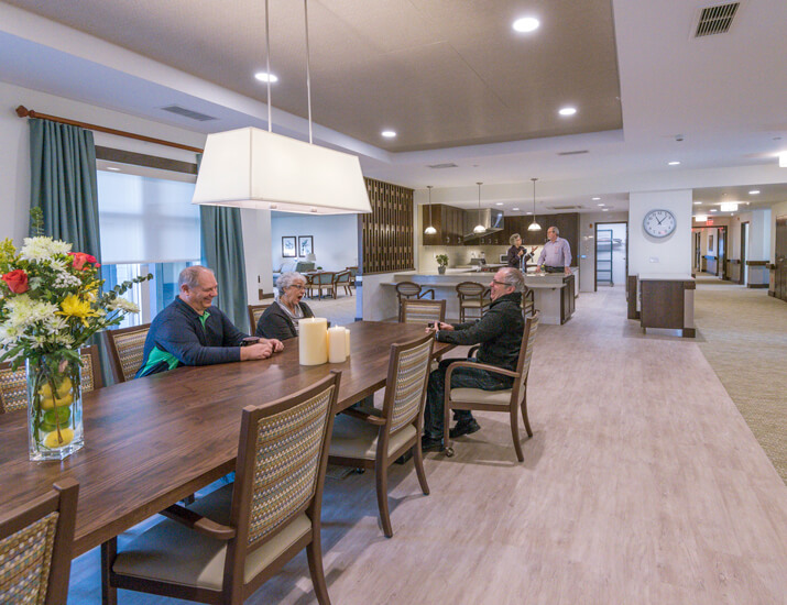 The Green House model is a new way of doing long-term nursing home care that is designed to look and feel like home. It’s a place where each person lives the way he or she wants, where people know one another and become part of the family. At ClarkLindsey, we have two Green House Homes of 12 residents each. Each are licensed for skilled nursing care. They include private rooms and common areas with a family-like atmosphere where residents can socialize and eat a home-cooked meal at times that are best for them. The small size and home layout with advanced staff training provide an opportunity for highly personalized care.